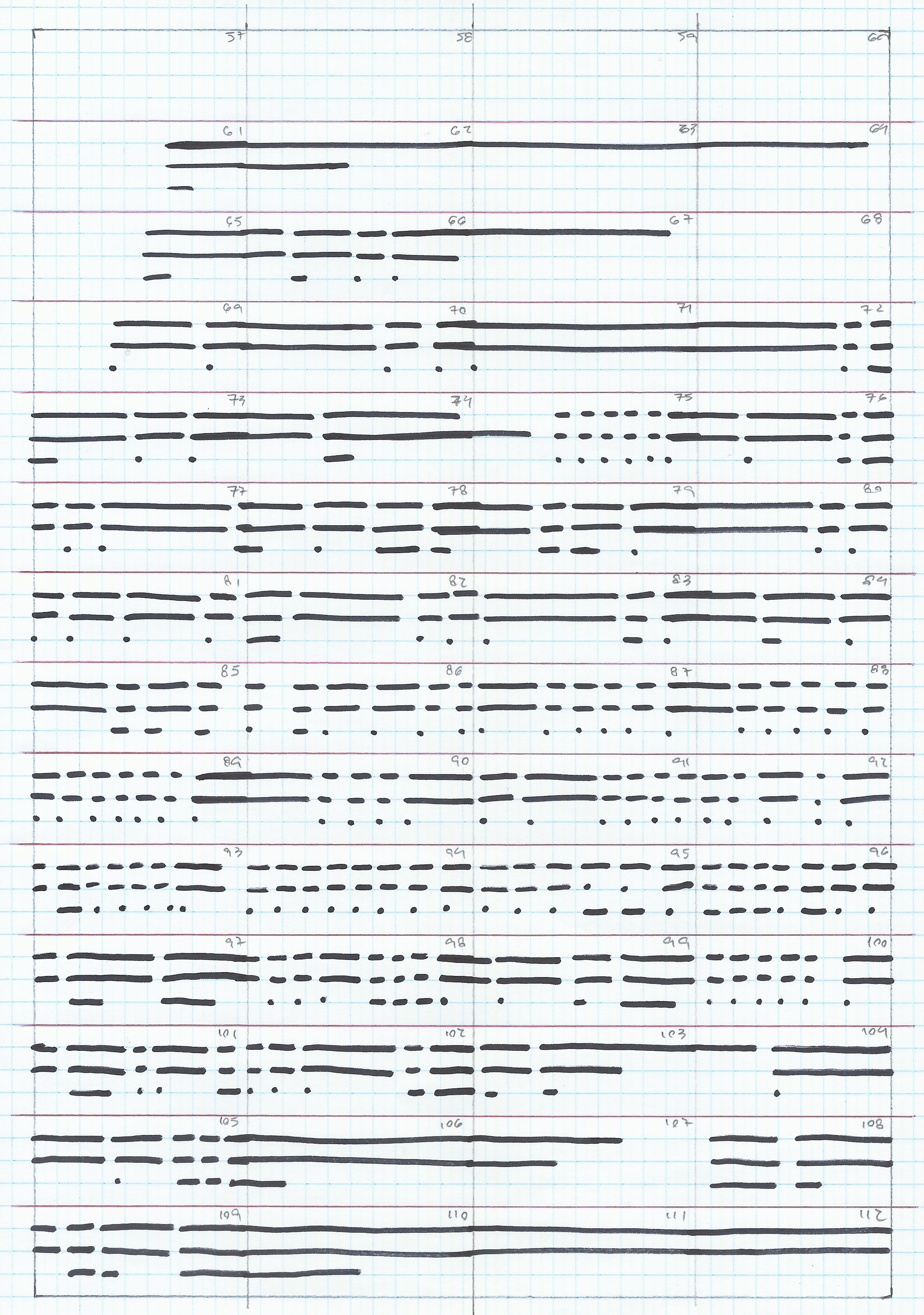 Aqui, essa experimentação de mídias continua e continuo puxando a corda dos processos num movimento de transposição, trazendo informação digital para o mundo físico e fazendo pessoas interpretarem essa linguagem digital -feita por humanos para computadores- de maneira analógica e subjetiva. um dos resultados disso pode ser visto no vídeo, onde músicos e não-músicos interpretam as partituras “gráficas-digitais” obtidas, primeiramente, da fotografia inicial.